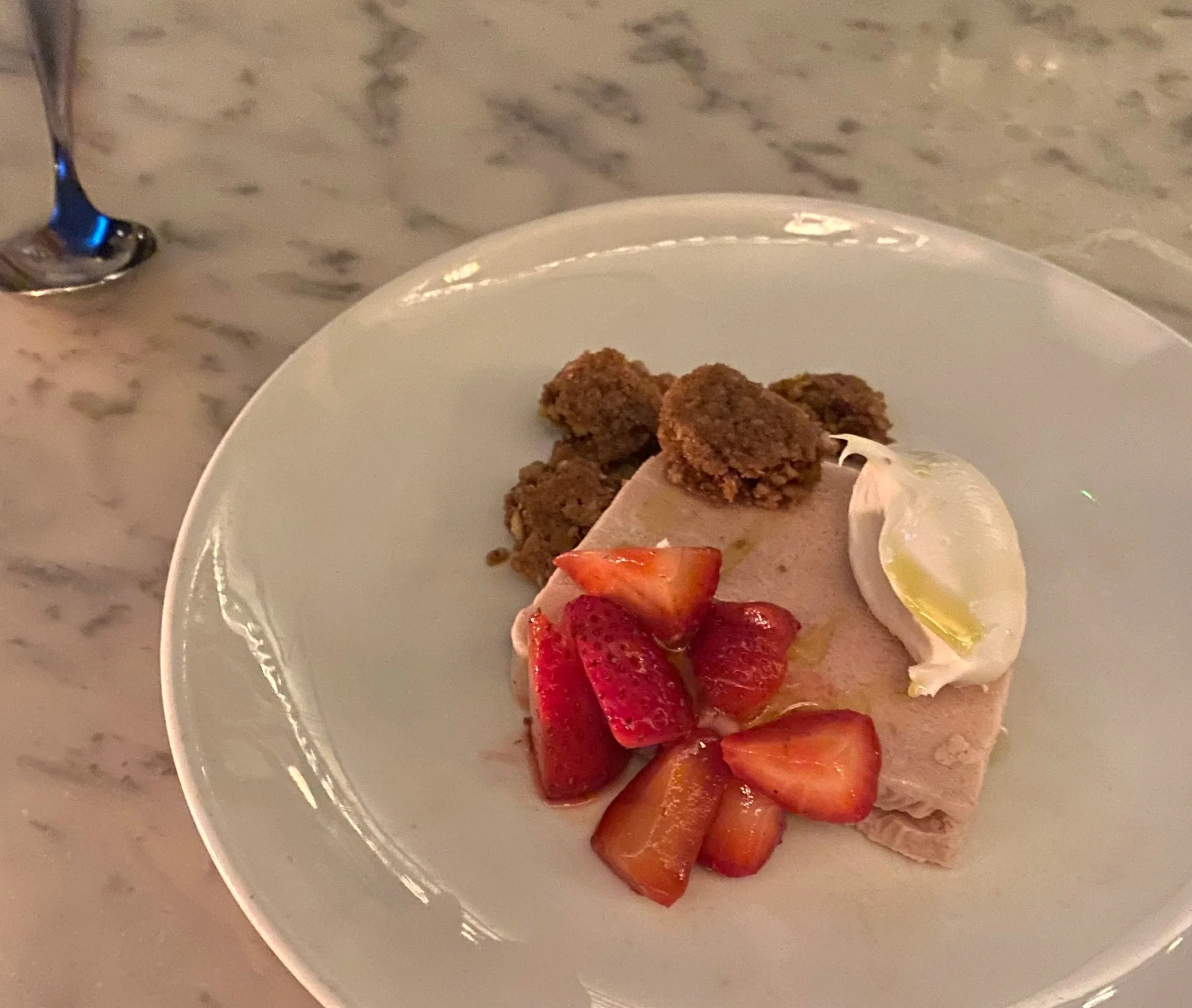 Still, the dish was enjoyable — if you’re into that sort of thing. I did find the contrast of the cold, icy semifreddo with the warm, richer mascarpone cream rather lovely.