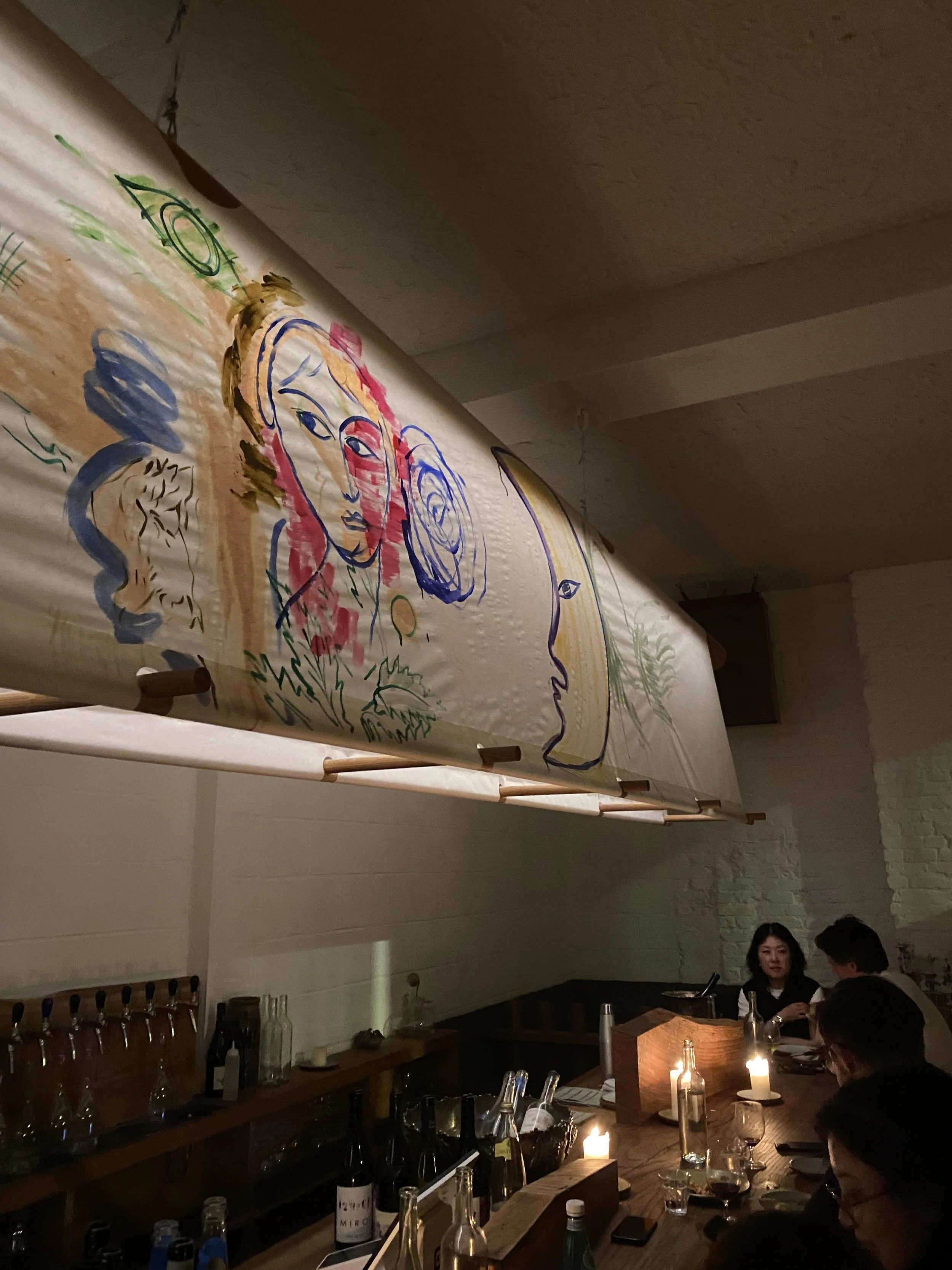 Bare concrete and scattered candles adorning the space, crowned by the minimalist but colourful pop of the moon mural above the bar, leave room for the tension between you and your date to swell — you can’t seem to look away from each other across the close-knit, communal tables. You may be in a relatively small room filled with cool strangers and a warm atmosphere, but this is the perfect setting to feel like it’s just the two of you in your own intimate bubble.